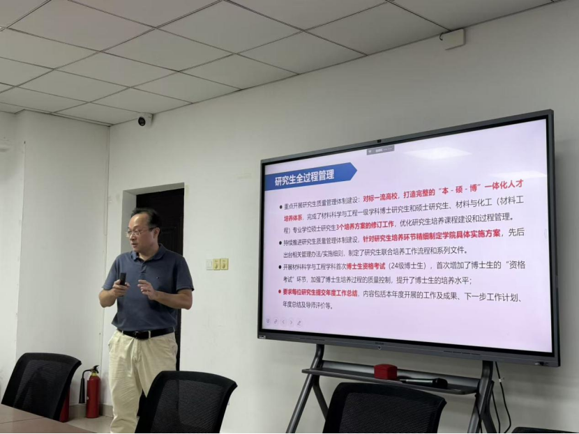 会议伊始,胡先文书记强调了本次培训会的重要性以及导师在人才培养中的关键作用。他指出,导师不仅是员工学术研究的指导者,更是其思想价值的引领者和成长成才的护航人。希望导师们建立科学的指导体系、培养研究生综合能力、构建良好的师生关系、注重自我提升计划,做一名合格的研究生导师。