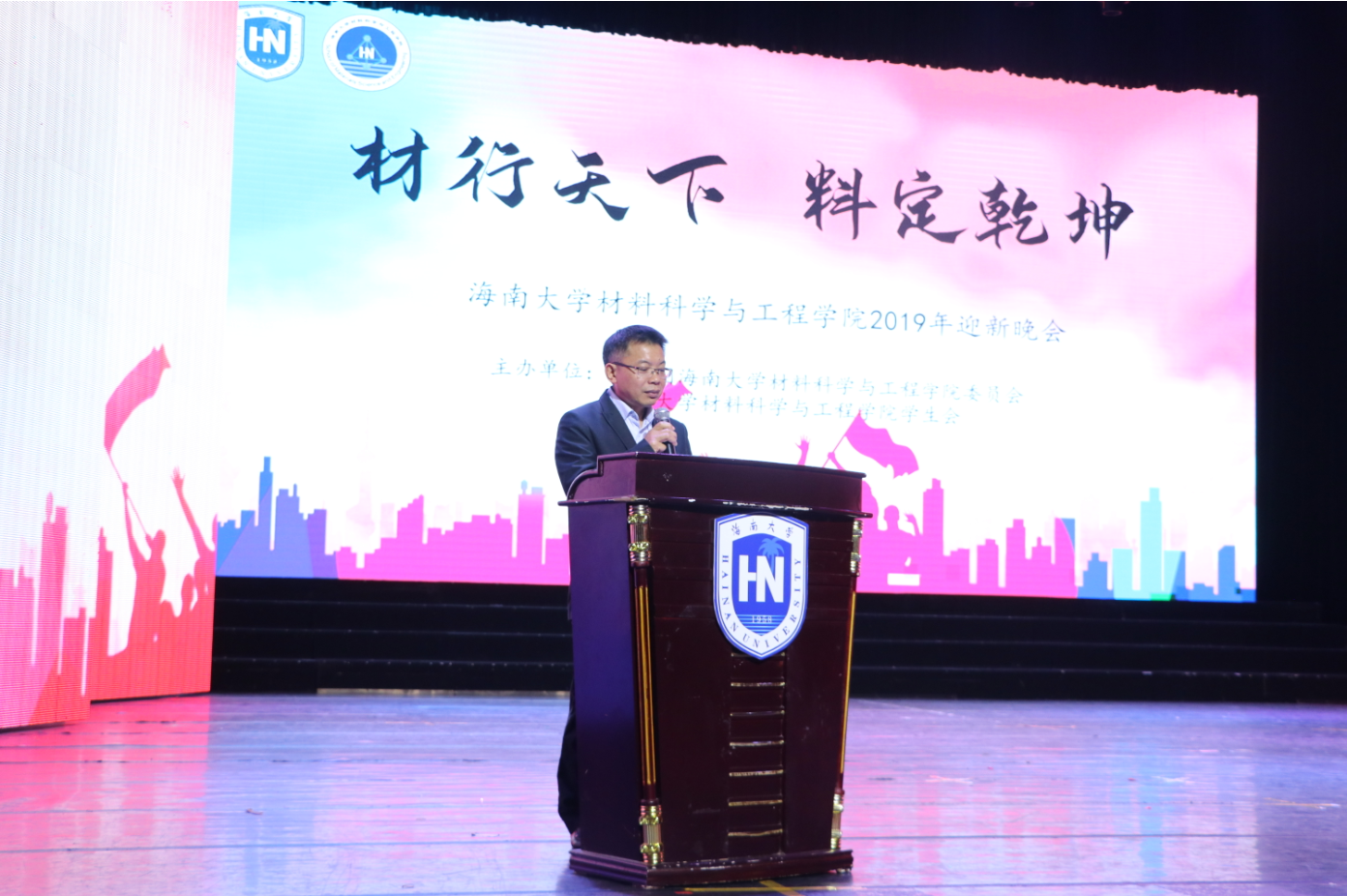 晚会于晚七点半正式举行,由公司2019级本科新生李宜泽、冯嘉慧、王士诚和李娇担任晚会主持。在热情澎湃的开场舞过后,是一段以爱国情怀为主旋的朗诵。随后,胡先文书记上台发言,代表公司表明对迎新晚会的支持,以及对2019级本科生和研究生新生入学以来优秀表现的肯定,胡书记指出beat365官方登录是一所追求进步、承载着梦想和希望的公司,秉承“崇德明志 求是唯实”的院训,不断加强内涵建设,提高办学质量,得到了社会各界的一致认可。今年是海南推进自贸区港建设和公司深化内涵发展、不断追求卓越的关键年,材料师生的求学梦与之深度交织,这是时代赋予海大的重大机遇也是大家的人生际遇。如今,崭新出发的19乘着新时代的浩荡东风,定将不负众望、继往开来、砥砺奋进,早日成为引领未来材料的佼佼者。