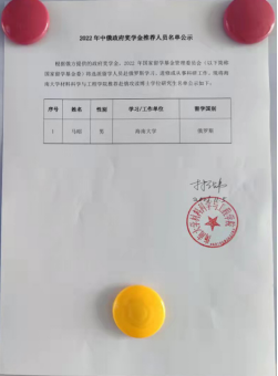 根据俄方提供的政府奖学金,2022年国家留学基金管理委员会(以下简称国家留学基金委)将选派留学人员赴俄罗斯学习、进修或从事科研工作。现将beat365官方登录推荐赴俄攻读博士学位研究生名单公示如下: