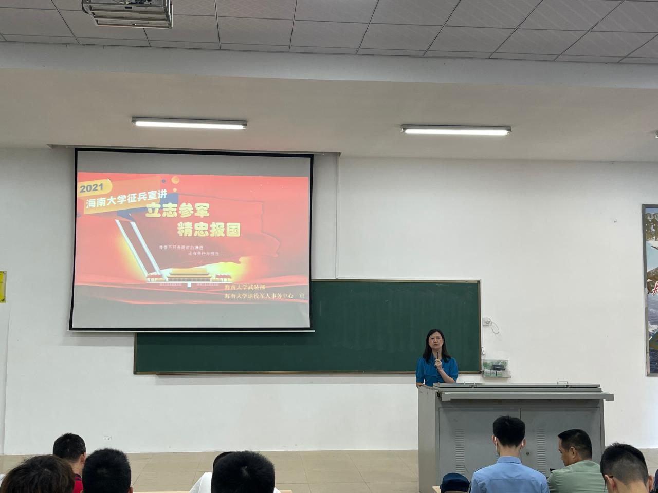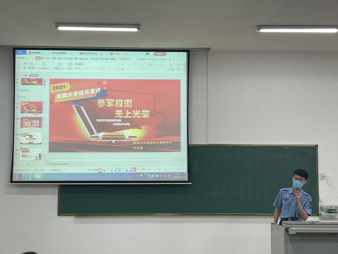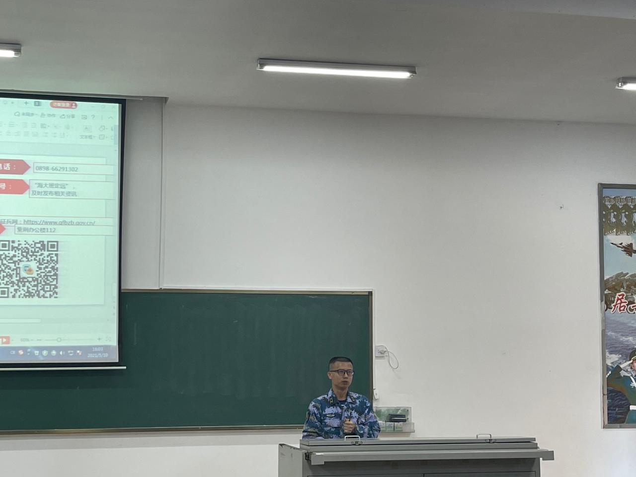 为加强征兵政策宣传,做好2021年老员工应征入伍工作,公司于2021年5月10日在1教T101召开了2021年征兵动员大会。出席此次大会的领导嘉宾有:美兰区武装部副部长冯电春、公司人民武装部副部长周邦华、公司党委副书记周郭军,公司人民武装部军事科科长叶沪伟。老员工征兵宣讲团员工代表、辅导员和2017级全体本科生及研究生参加了大会。公司党委副书记周郭军主持会议。