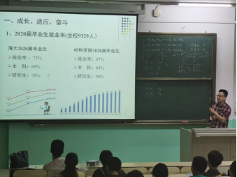 为引导毕业生了解疫情后特殊的就业环境,面对挑战把握机遇,并做好公司毕业生就业动员工作。10月26号晚,公司结合就业动员会和企业宣讲交流会,邀请公司员工企业金昌盛集团和英科医疗科技有限公司于3号教学楼310室开展专场宣讲及企业员工面对面交流指导活动。本次专场宣讲交流会由翁浚溥老师主持,公司高分子系及材料系老师代表、材料科学与工程、高分子材料科学与工程、材料与化工专业的应届毕业班本硕同学均参加了此次宣讲交流会。