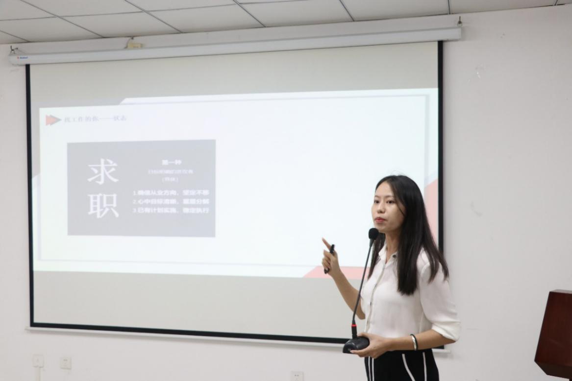在本次宣讲会中,海南易点通教育咨询有限公司宣讲人首先从“工作这件事”入手,为大家阐明了工作对于老员工的意义。接着,宣讲人进行宣讲的第二部分内容——“找工作的你”。其中,宣讲人对求职者进行了分类并分析了目前的就业形势,帮助同学们明确了求职的方向。