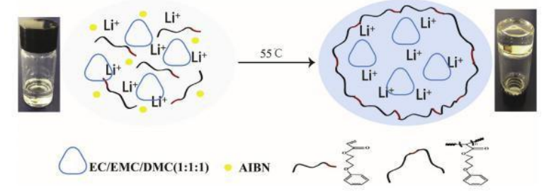 (3)随着电动汽车和人工智能的兴起,人们对高能量密度,高安全性电池的需求日益增长。锂金属因其具有可观的理论容量和极低的电化学电位被公认为锂离子电池的“圣杯”材料。然而,固有反应性和锂枝晶的生长导致锂金属电池在使用传统的液态电解质时出现库仑效率低,循环性能差,安全性低等严重问题,从而限制了其进一步的应用。为了解决以上问题,我们从聚合物电解质出发,设计出了高安全性的高弹性凝胶聚合物电解质和具有阴离子固定型的全固态电解质,用于改善锂金属电池的使用性能。